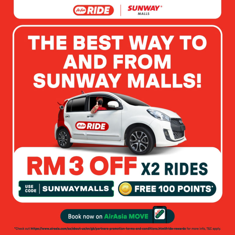 Travel here and save more with AirAsia Move when you book a ride to from Sunway Big Box Retail Park & Sunway Citrine Hub! 🚗 Enjoy up to RM3 off for 2x rides using AirAsia MOVE.