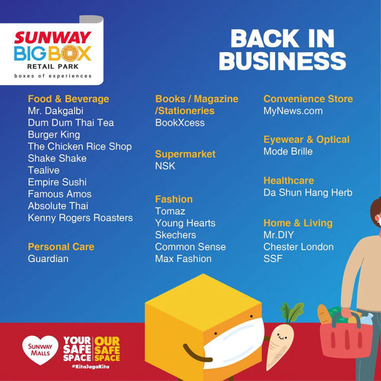 We know you’ve been waiting for your favourite outlets to reopen❗ Here’s the list of outlets which are now open! Operation hours are as usual (10am-10pm).