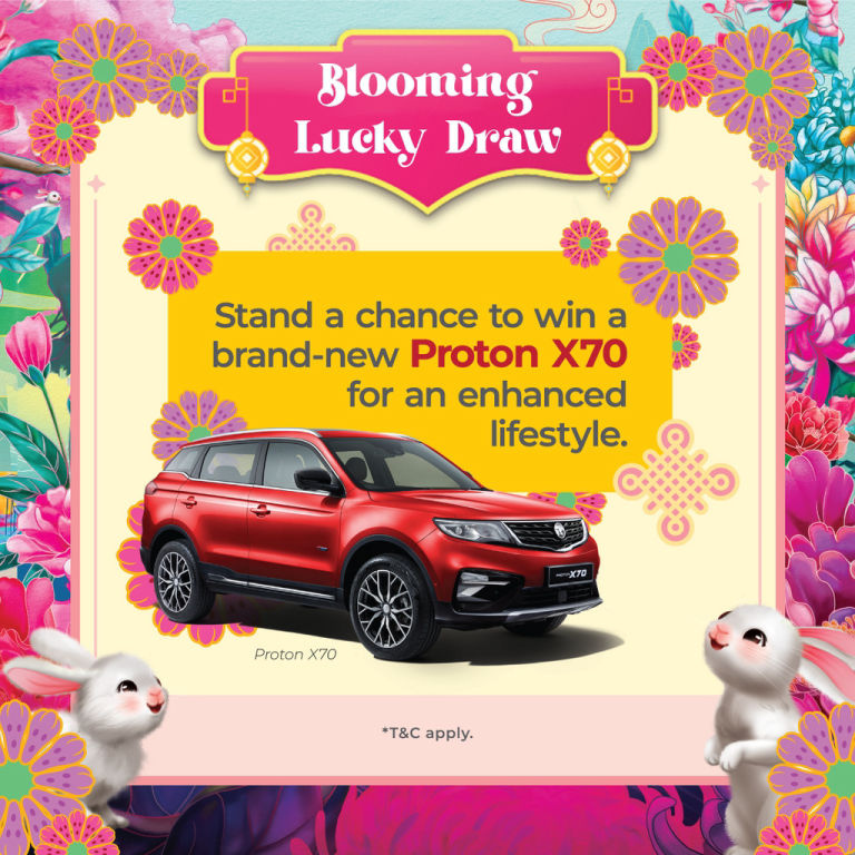 Let's welcome the Year of the Rabbit by spending in the mall and earning an entry to the Blooming Lucky Draw where you stand a chance to win a brand-new Proton X70!