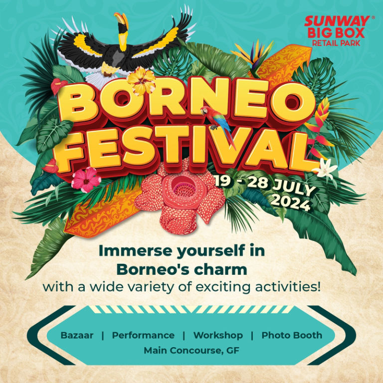 Get ready to dive into a cultural wonderland at the Borneo Festival! From 19 to 28 July 2024, join us at Sunway Big Box Retail Park for an unforgettable week of fun and festivities. Our Main Concourse will be transformed into a vibrant cultural paradise with: