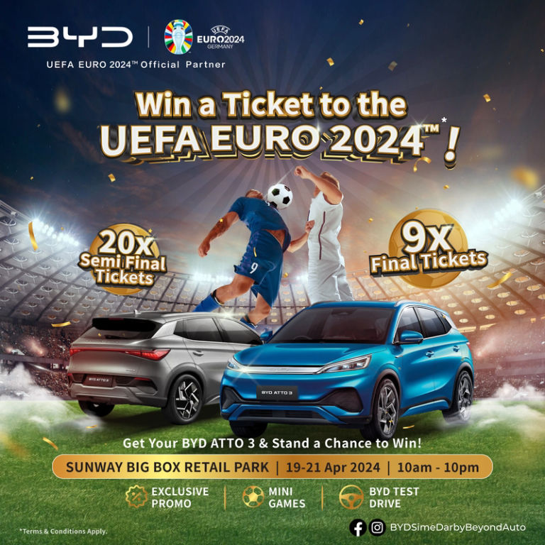 Stand a chance to WIN a ticket to UEFA EURO 2024™️ when you book BYD ATTO 3 at our Roadshow!