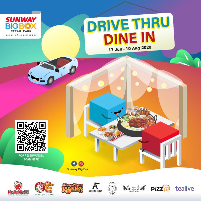 To provide a safer and more comfortable dining experience for you, we are introducing the FIRST of its kind “Drive Thru Dine In” campaign starting from 17 June until 10 Aug! You can now make reservations and preorder your favourite food before coming to dine in at the alfresco area at Sunway Big Box.🍹🍽