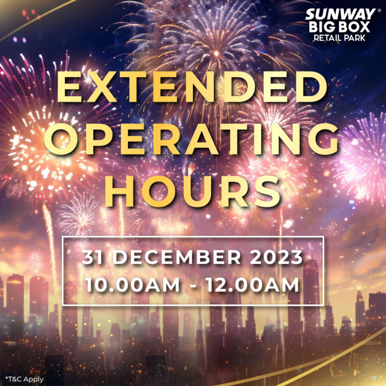 🌟 Jom celebrate New Year's Eve at Sunway Big Box Retail Park! 🎉 We are extending our operating hours until midnight for the celebration party this coming Sunday! Let's bid farewell to the year with a bang and indulge in some late-night shopping delights! 🛍️