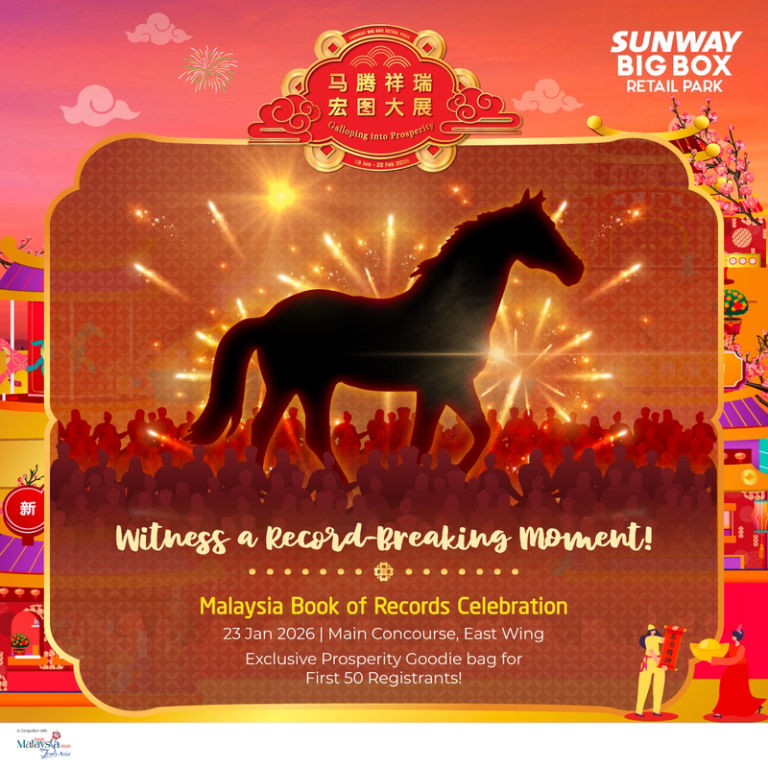 Don’t miss a special highlight on 23 January 2026 (10AM – 1PM) as Sunway Big Box Retail Park celebrates a Malaysia Book of Records recognition, featuring a giant origami horse sculpture — a must-see centrepiece of the season.