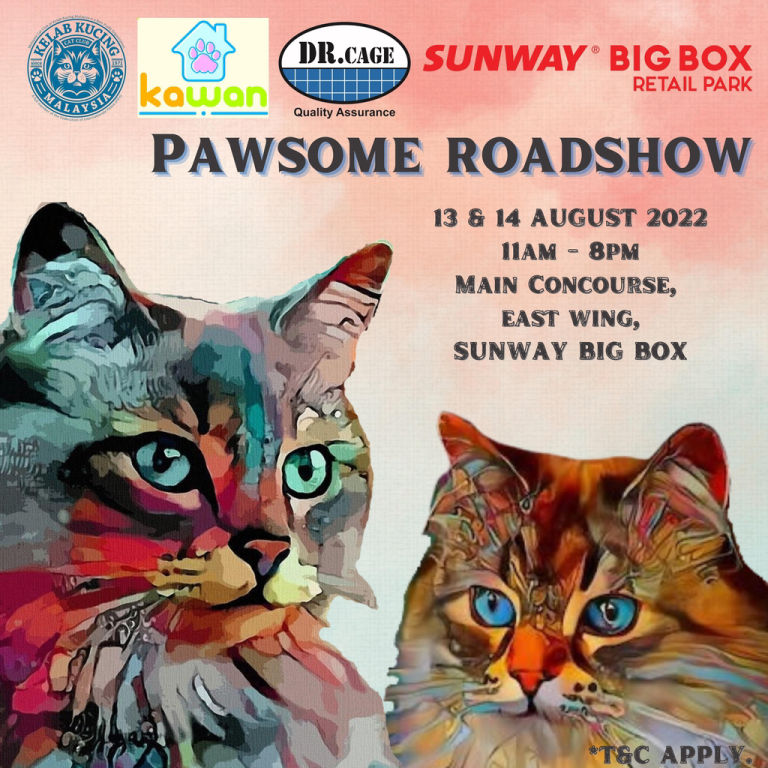 Calling cat lovers to join Pawsome Roadshow, organised by Kelab Kuching Malaysia, happening next week!