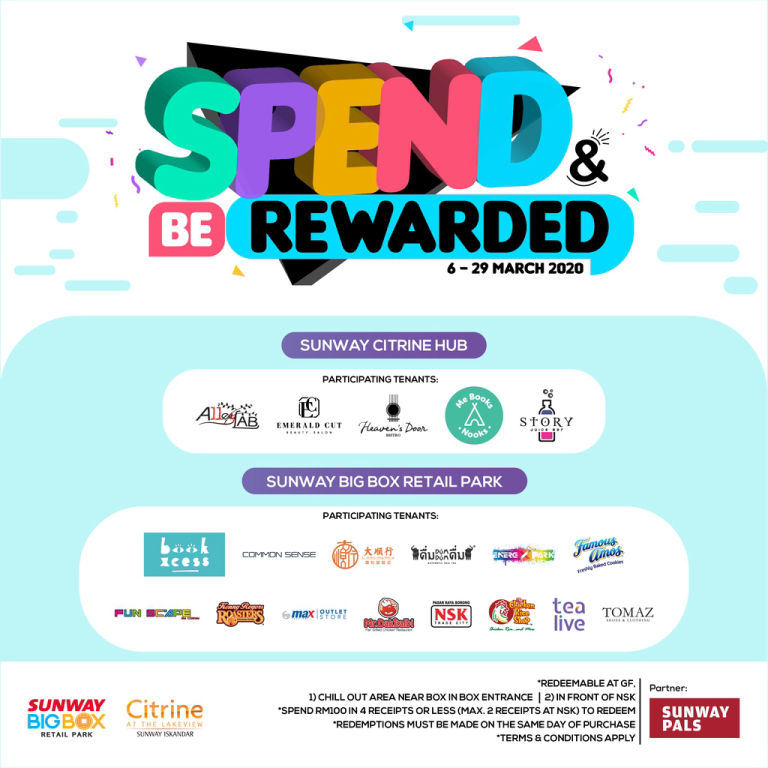 Spend RM100 in 4 receipts or less (Max. 2 receipts at NSK) at Sunway Big Box or Sunway Citrine Hub, and you will be entitled to a Spin & Win and Lucky Draw! There are other exciting giveaways for you to win too!