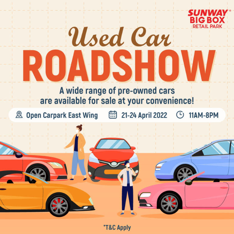 "Looking at purchasing a spare car for added convenience? Used Car Roadshow will be organized at our Open Carpark East Wing, from 21 to 24 April 2022, 11am - 8pm, where you would find pre-owned cars that could be up to your liking! Drop by to check them out!"