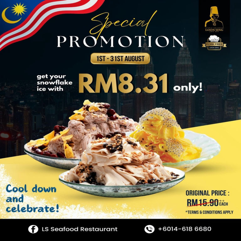 This August, we're bringing you an irresistible treat to celebrate our nation's pride and joy! For the entire month, indulge in our delicious snowflake ice at an unbelievable price of just RM8.31 each. Yes, you heard that right! Choose any flavor you love and enjoy as many as you wantโ€”there's no limit!