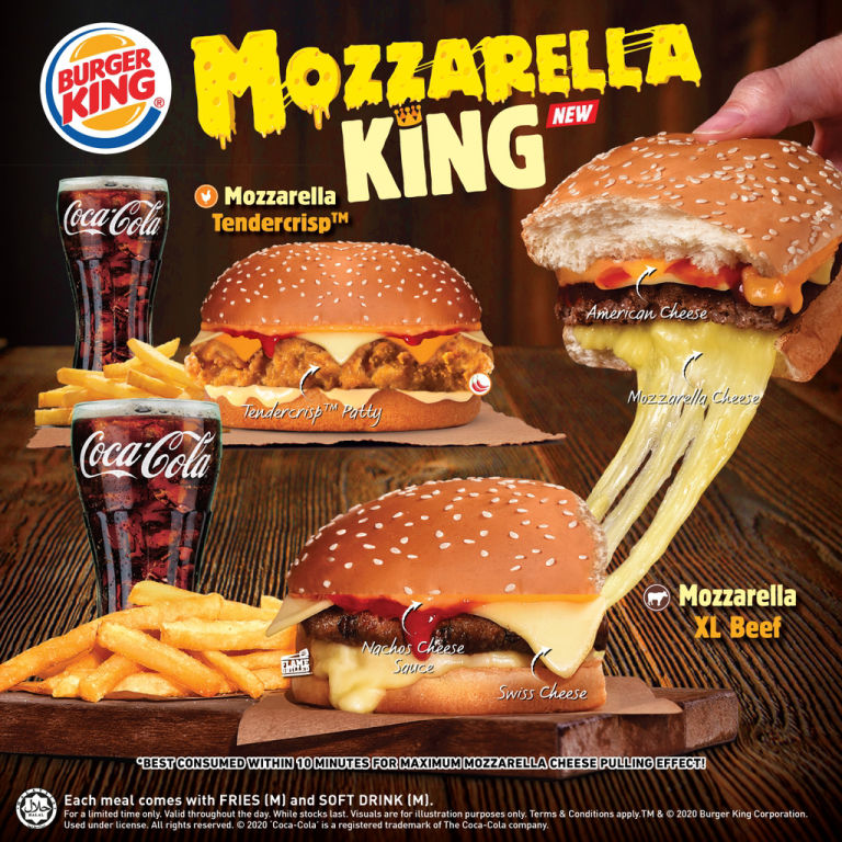 Can’t decide between Mozzarella Cheese, American Cheese, Swiss Cheese and Nachos Cheese Sauce? Get all four in Burger King’s epic Mozzarella King burger! Available in chicken and Beef. #BurgerKingMY