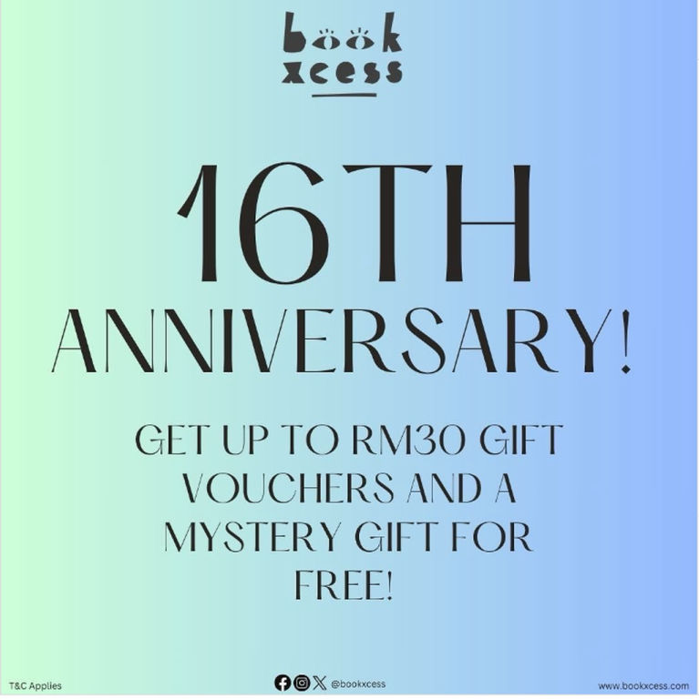🎈 In honor of our 16th Anniversary, BookXcess is thrilled to present an array of enchanting gifts with your purchases. For spends above RM80, unwrap a FREE RM10 voucher and dive into a world of savings!