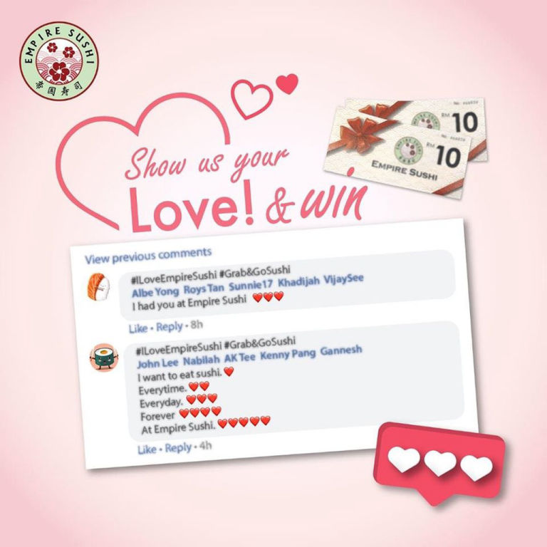 *10 winners will receive a RM10 worth of Empire Sushi Cash Voucher.