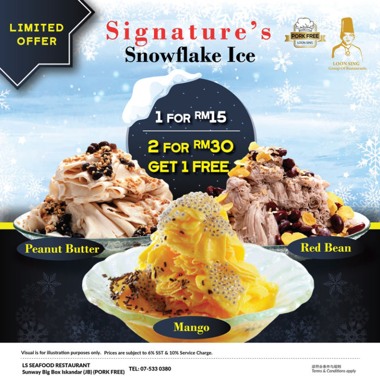 Get ready to chill with Loon Sing's signature snowflake ice! Indulge in one for RM15, or gather two friends and enjoy all three flavors together for a frosty feast! Don't let this icy offer slip away!
