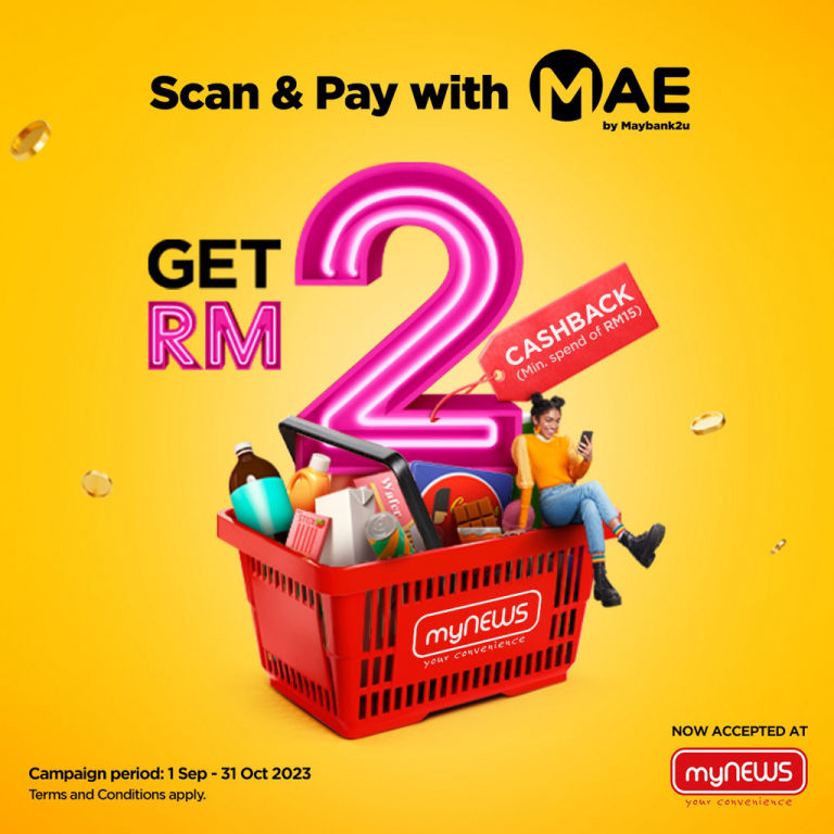 [𝐄-𝐰𝐚𝐥𝐥𝐞𝐭] Exciting news – MAE is now accepted at myNEWS! All you need to do is just scan and pay with MAE and you can get RM2 cashback instantly, with a minimum spend of RM15.