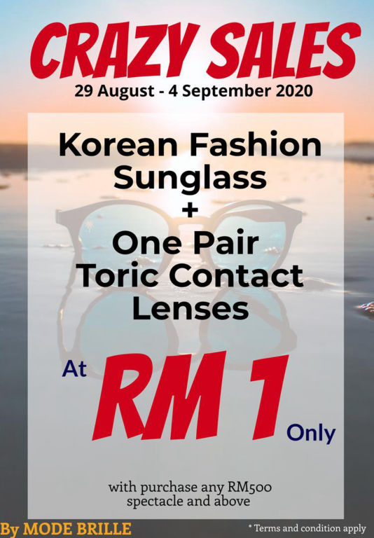 By Top up at just RM1, you can get a Korean sunglasses, with has 100% UV protection (worth RM135) and a pair of toric astigmatism contact lens (worth RM80)‼️