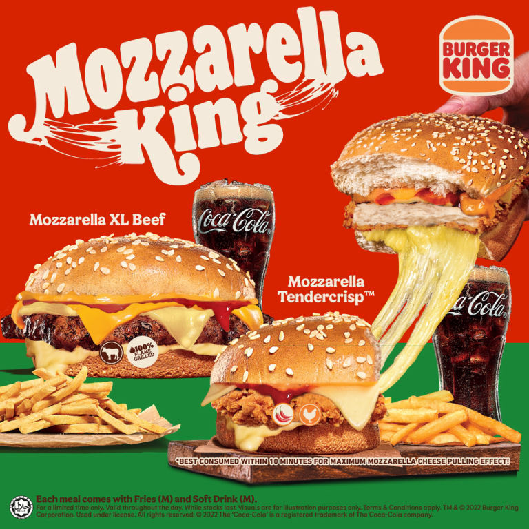 Back by popular demand! Our Mozzarella King is back to satisfy your ultimate cheese cravings. Enjoy 4 type of cheeses - American Cheese, Swiss Cheese, Mozzarella Cheese and Nacho Cheese Sauce - all in one bite today! #BurgerKingMY