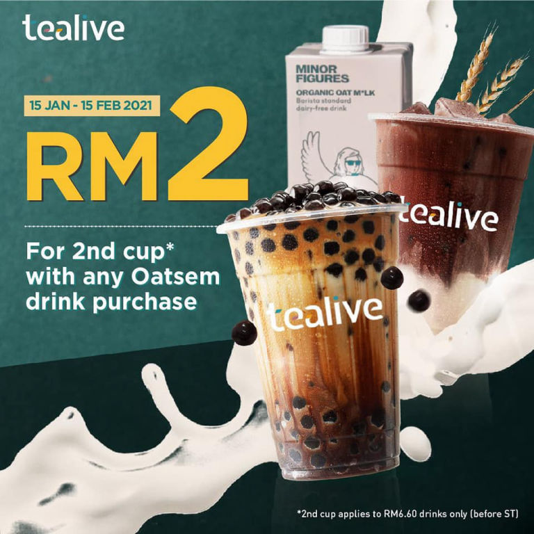 Get any Oatsem drink today & SHOW THIS IMAGE to enjoy your 2nd cup of any drink FOR ONLY RM2 😍 If you’re ordering using Tealive Self-Pickup, just key in promo code ‘RM2’ at checkout to enjoy the offer.