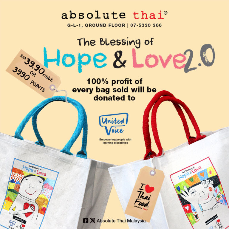 Grab the limited-edition canvas bag designed by Damien Wong from United Voice for RM39.90nett and stand a chance to win a RM10 delivery e-voucher! 100% of the profit will be donated to @United Voice, an NGO that empowers people with learning disabilities 🌈 Available now at Absolute Thai Sunway Big Box. T&C Apply.