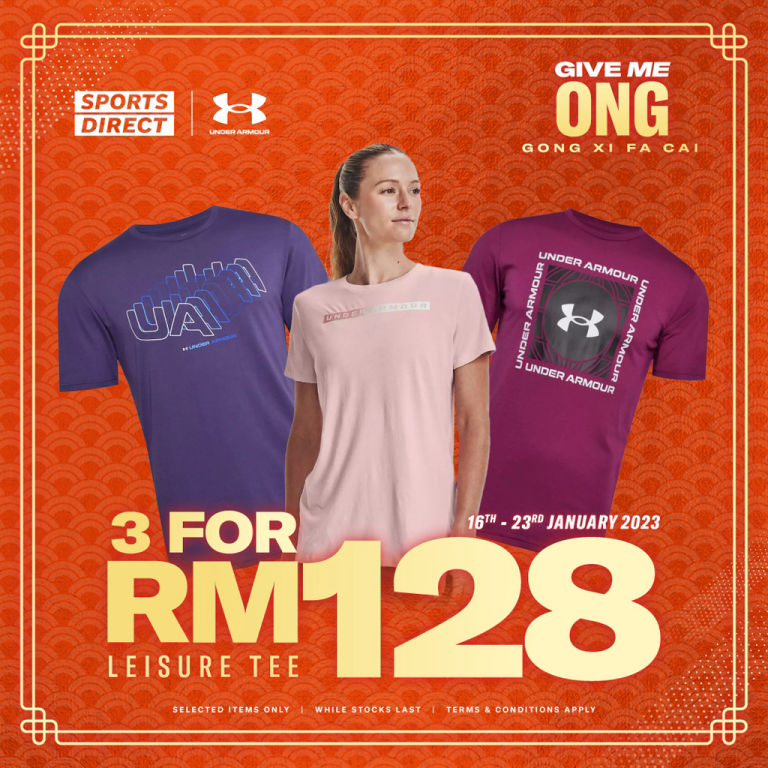 Triple ONG Deals on Under Armour Tee! Shop Under Armour Leisure Tee 3 For RM128 or Training Tee 3 For RM138 only