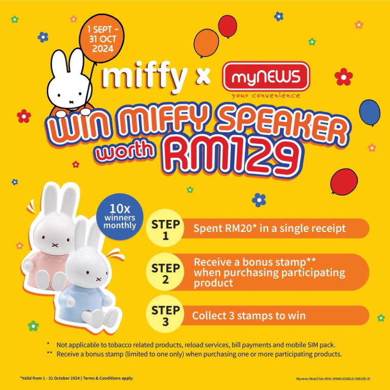 Stand a chance to win a Miffy Speaker worth RM129 when you purchase any Miffy participating products like Nescafe, Coca-Cola, Wonderbrew, Chipsmore, Twisties, Cadbury, and more! 🎉🎁 Don't miss out on this super cute prize—shop your favorite products today and you might just be a lucky winner! 🐰✨