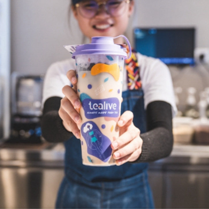 An innovative cup design that holds toppings ON TOP of the drink, each sip is now a smooth flow from cup to mouth, thus eliminating the need for a straw.